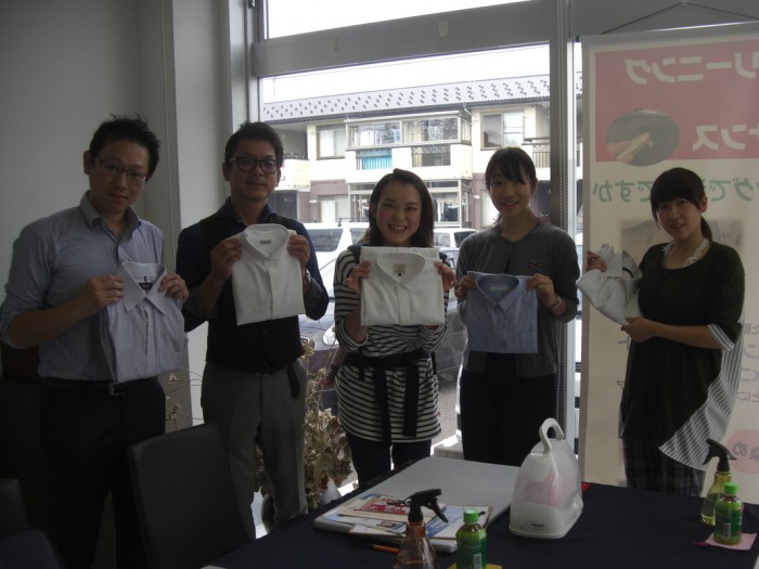 ご持参いただいたシャツのシワを丁寧に伸ばしていきます。ご自宅でも実践できるアイロンテクニックもご紹介いたしました。アイロン掛けについての素朴な疑問にお答えしたり、わからないところは講師がサポートいたします♪「今まで知らなかった~!」という驚きや、これなら家でも実践できるという感想を頂き、和気あいあいとした楽しい教室となりました!