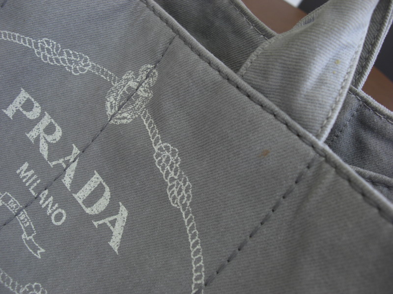 PRADAのカナパ(グレー)の黄ばみや黒ずみ、色褪せは他のカラー同様に概ね改善いたします。内側のレザーから色が出るタイプは取り外しして洗浄し、洗浄後に再度取り付け致します。