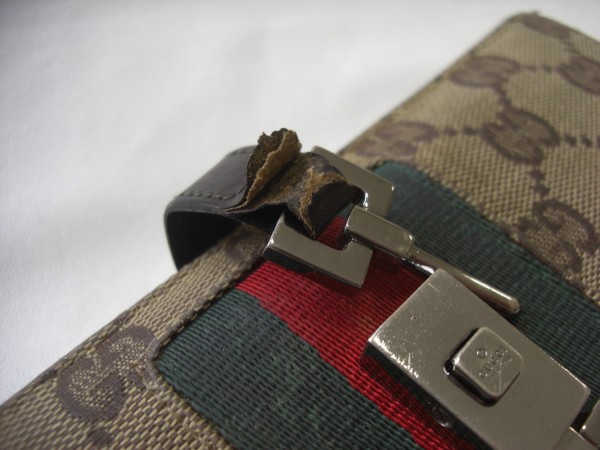 グッチGGキャンバス折山部分の破れは、上から新たにパイピングを施すことで補修可能です。