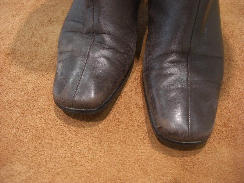 つま先やかかとなどの擦れやキズは染色補正にて修復可能です。汚れが付いたままの保管はカビの原因になりますのでシーズン後のメンテナンスをおすすめ致します。