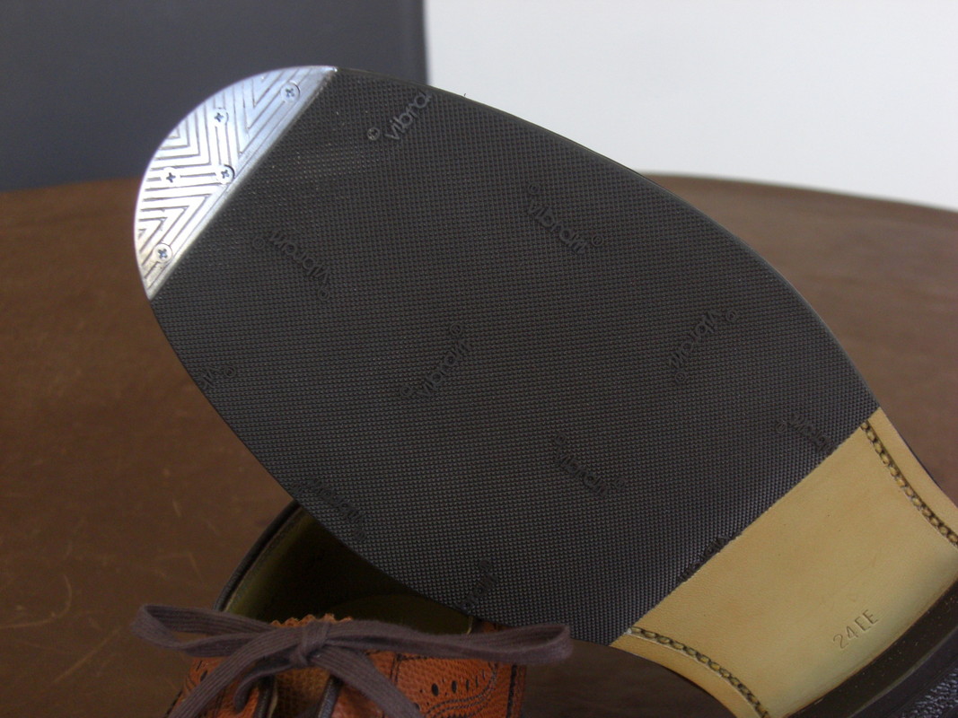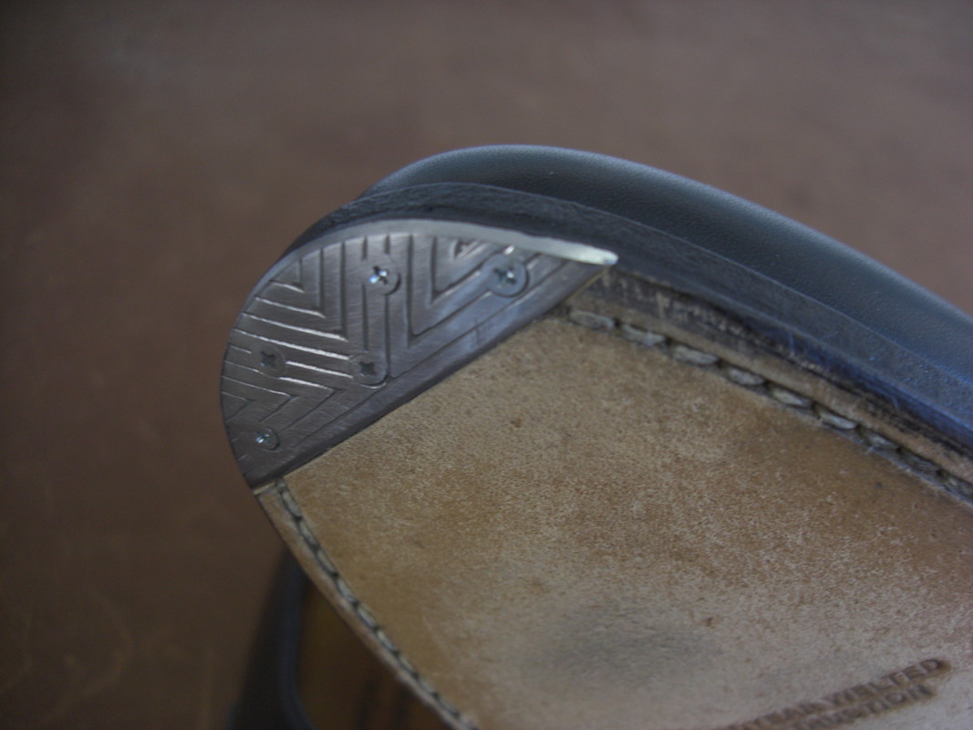 トゥスティールは革靴裏面の先端に金属を取り付け、補強する方法です。付けることでつま先の消耗を抑えてくれます。金属を取り付けるため、歩き方によってはコツコツと音がなる場合があります。
