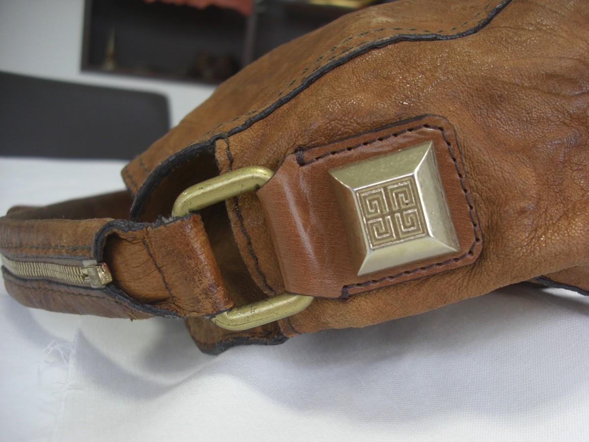 破れやすいハンドルの根元部分の革をパーツ事作成し交換いたしました。