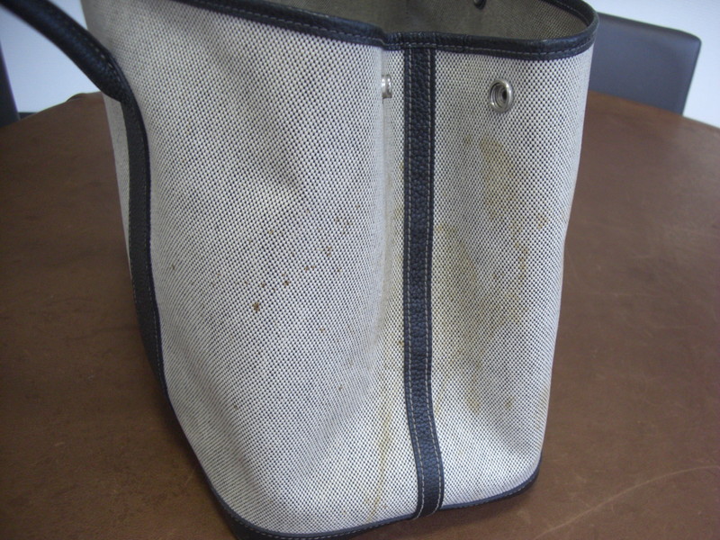 エルメスのガーデンパーティーの日焼け色褪せが酷くエルメスアフターセールスカウンターに持ち込みましたがこんなに状態が悪いとどうにもならないと言われかなり落ち込んでいましたがネットで検索してはなこやさんを知りました。エルメスにも無理と言われてたので少しでも綺麗になればぐらいで期待しすぎないでお願いしました。