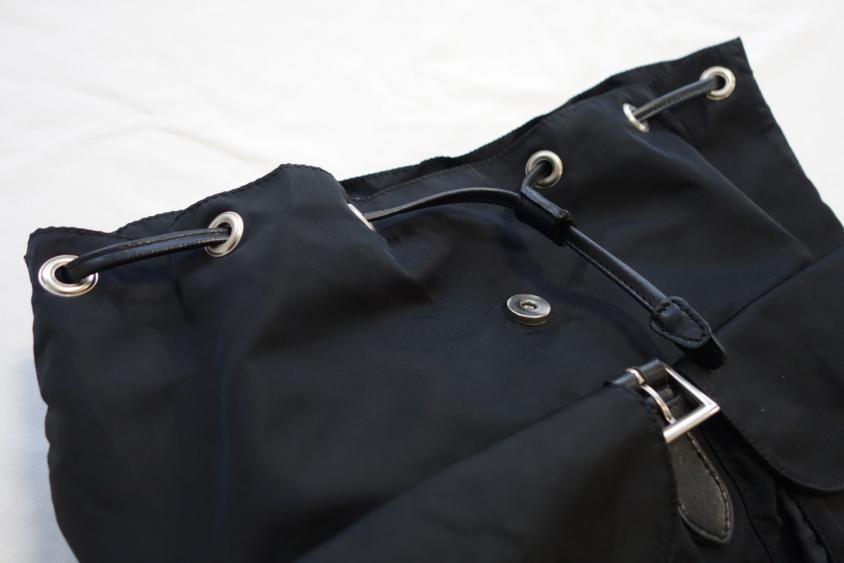 ナイロン素材のしぼり紐の破れは新たにレザーで作成することで補修可能です。紐の長さや太さはオリジナルのサイズに合わせて作成します。レザーの質感はできるだけ違和感のないよう、他のパーツと似たものをお付けします。