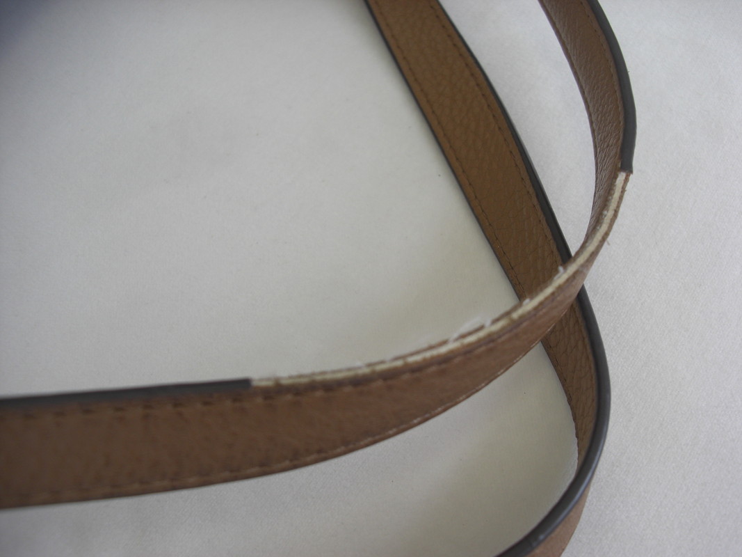 ハンドル(持ち手)のコバ(ヘリ)のコーティングが剥がれたものを革巻き補修いたしました。