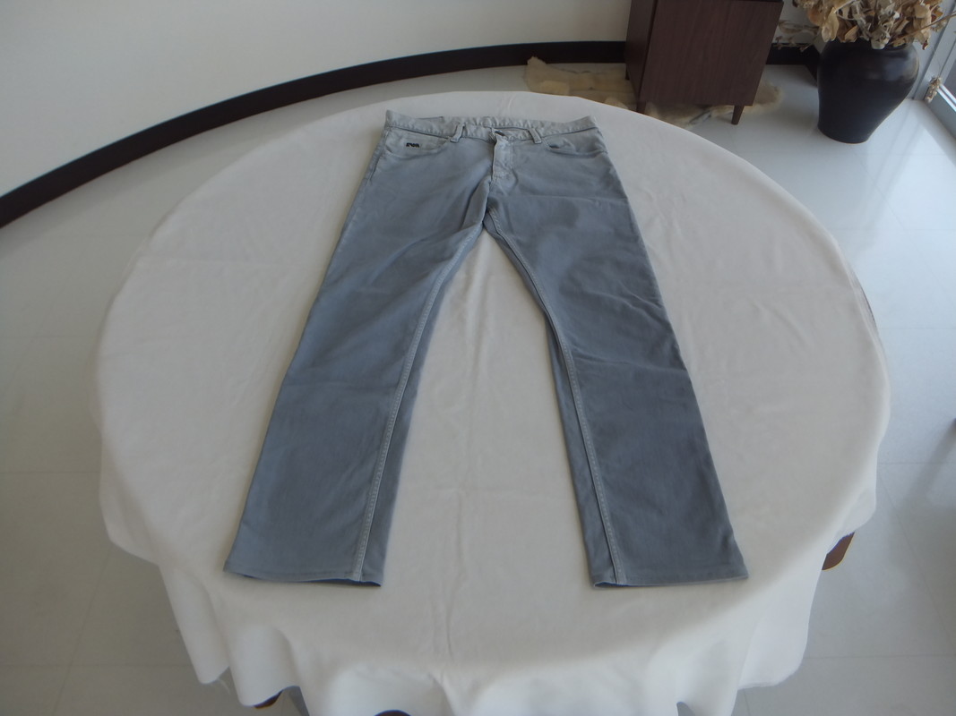デニムパンツはムラがあり霜降りのある生地ですが、染め変えることで白糸部分にも色がのるので霜降りがなくなり、1色の綿のパンツになります。