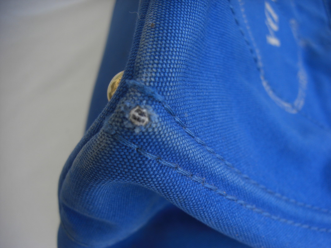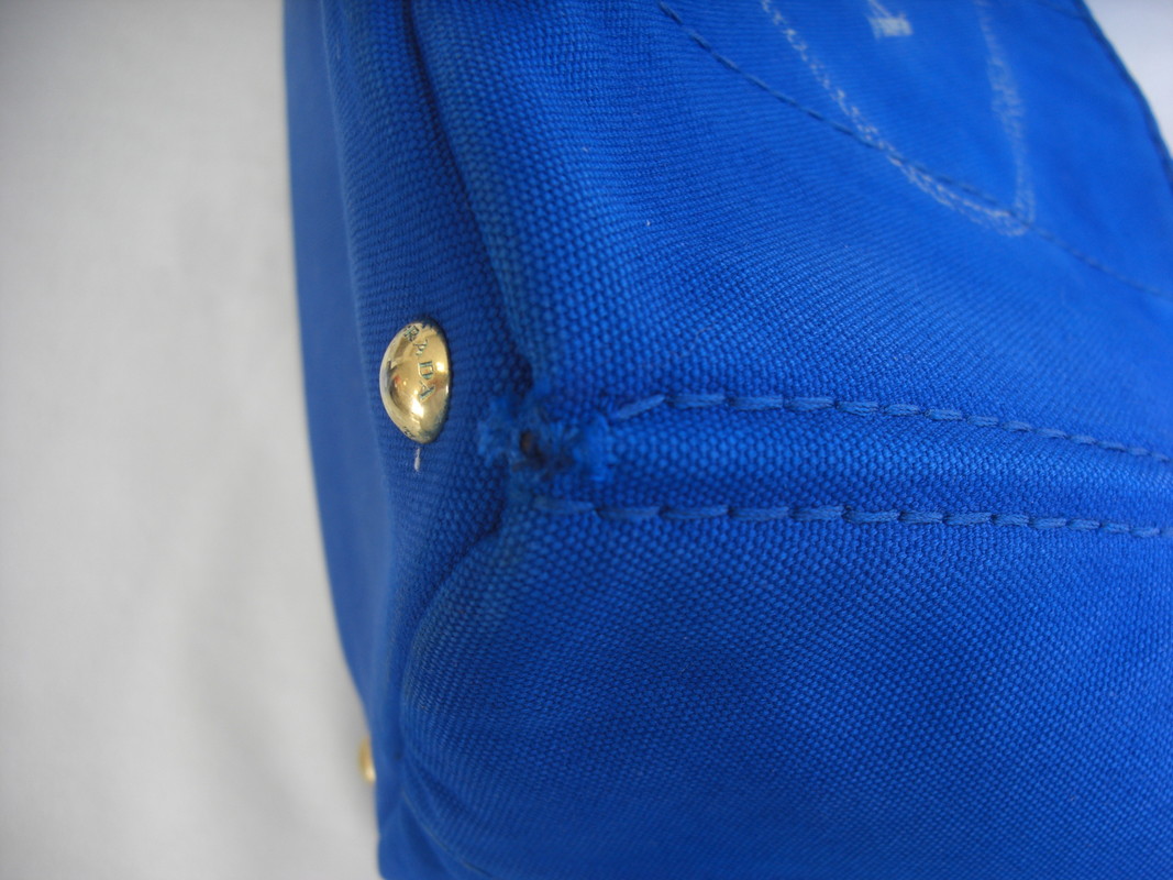 プラダカナパの汚れは水洗いし除去いたします。角スレは洗うことで多少広がる場合もありますが、ご希望の場合は補修も承ります。このような状態の場合は一度ご相談ください。