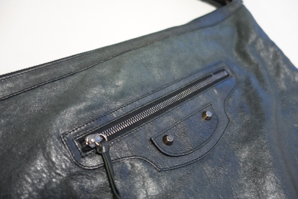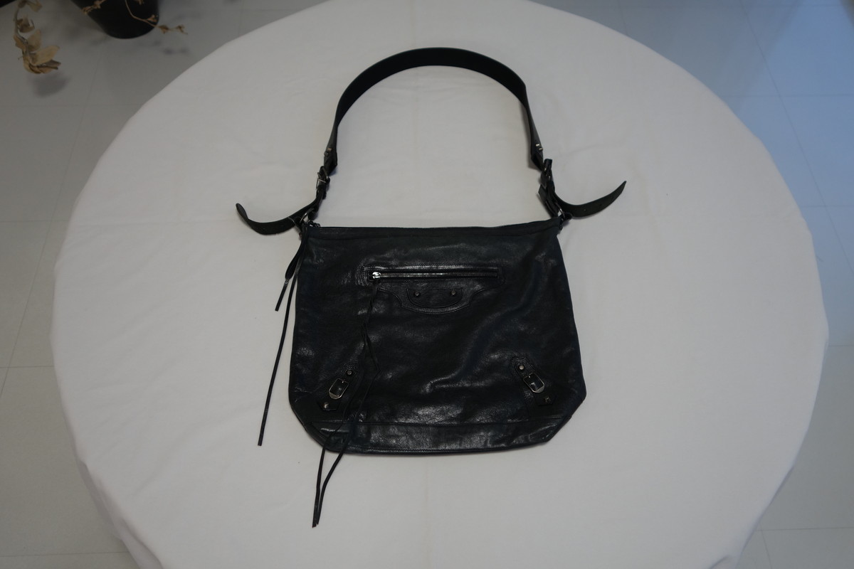 バレンシアガバッグの魅力は独特のレザーの模様が醸し出す風合いあるムラ感ですが、使用していくうちに乾燥して白っぽくなってきます。乾燥が進むとひび割れを起こす事がありますのでメンテナンスは必要です。黒や白はそれほど違和感なく染色可能ですが、お色によっては透明感が無くなり革の質感が変わりますがメンテナンスは可能です。お気軽にご相談ください。