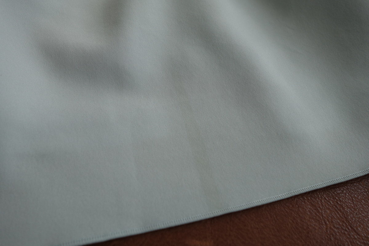 うっすらと裾にシミが出来ております。このようなシミはウェットクリーニングにて概ね除去可能です。
