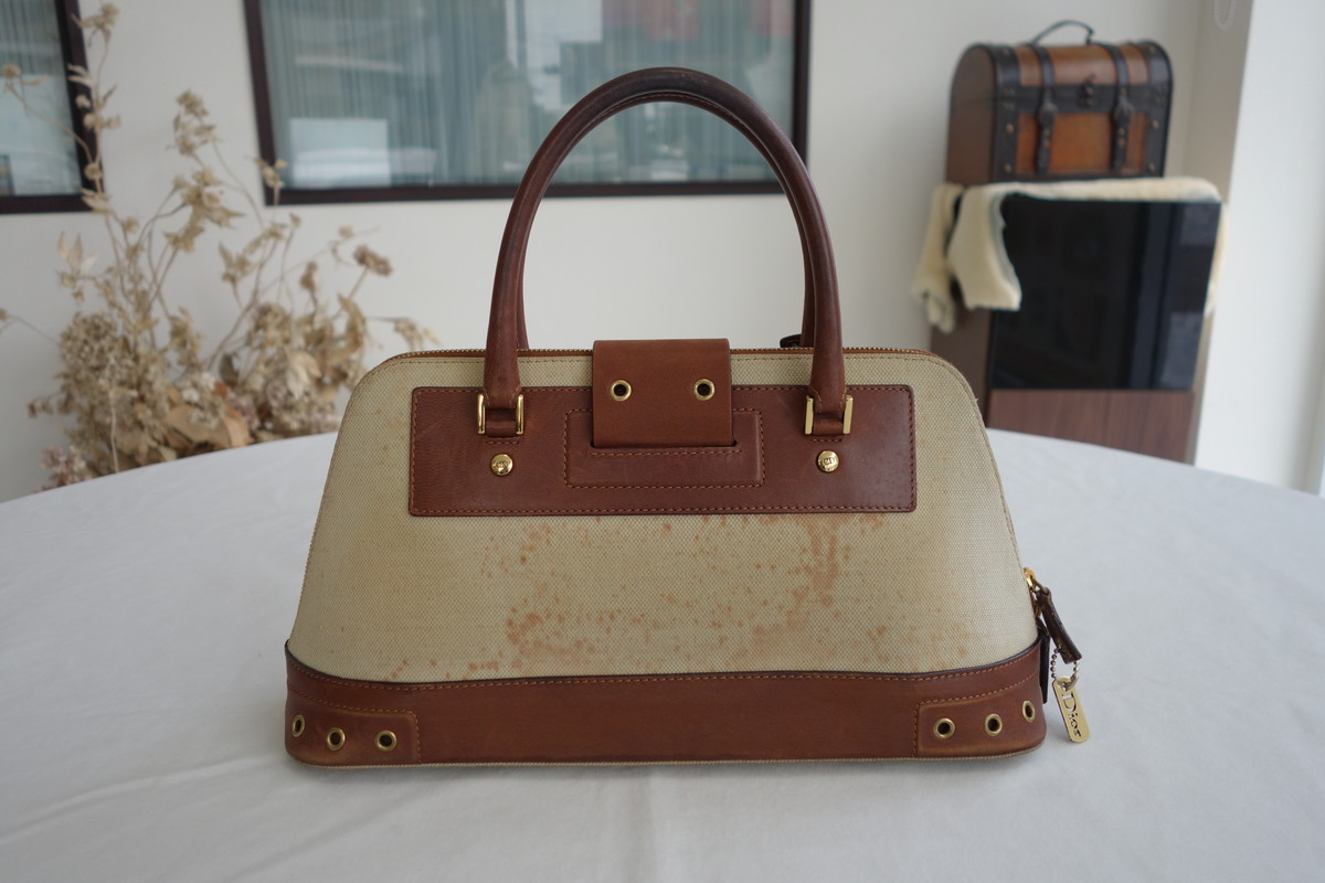 キャンバスバッグに発生したカビや茶シミもクレンジング・染み抜きを施し除去いたします。革とのコンビ素材の場合もご相談ください。