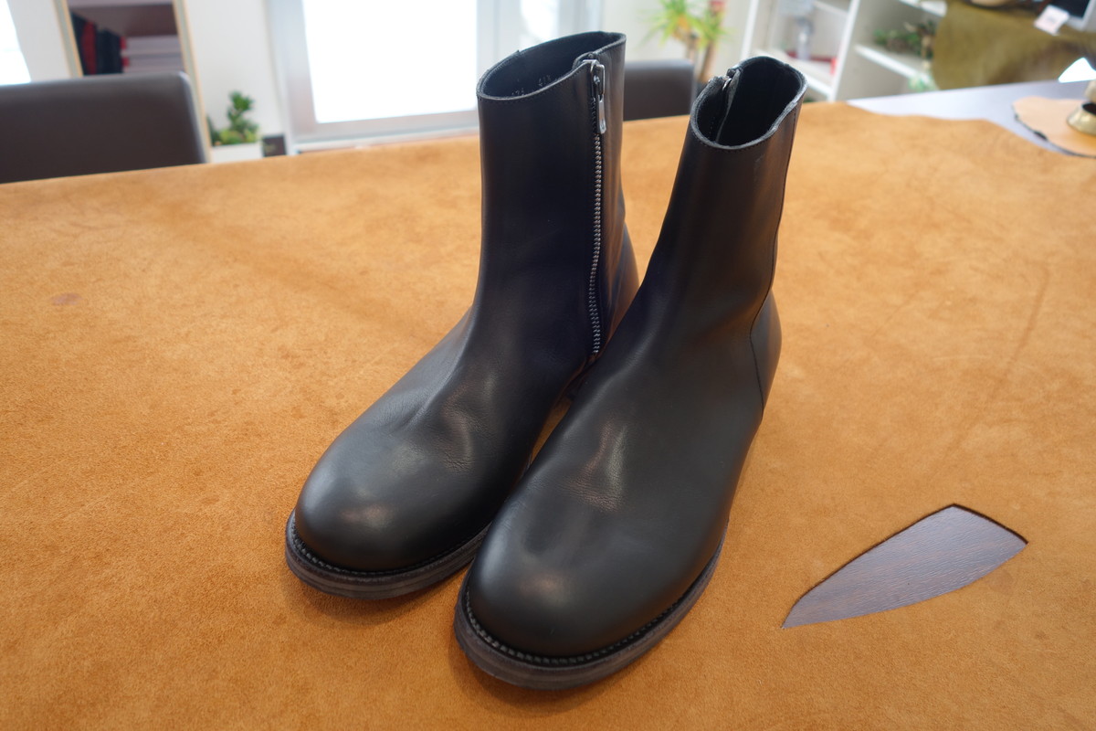 レザーブーツのお修理です。滑りやすいレザーソールにラバーを貼りました。