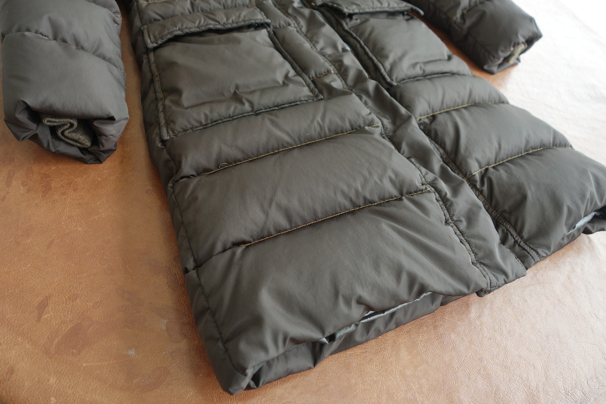 ステッチは素材上染まりませんので多少浮いた仕上がりになります。現状より濃いお色でお染め替えを施し変色を隠しますので新しい雰囲気のダウンウェアに生まれ変わります。変色でお困りの際はご相談下さい。