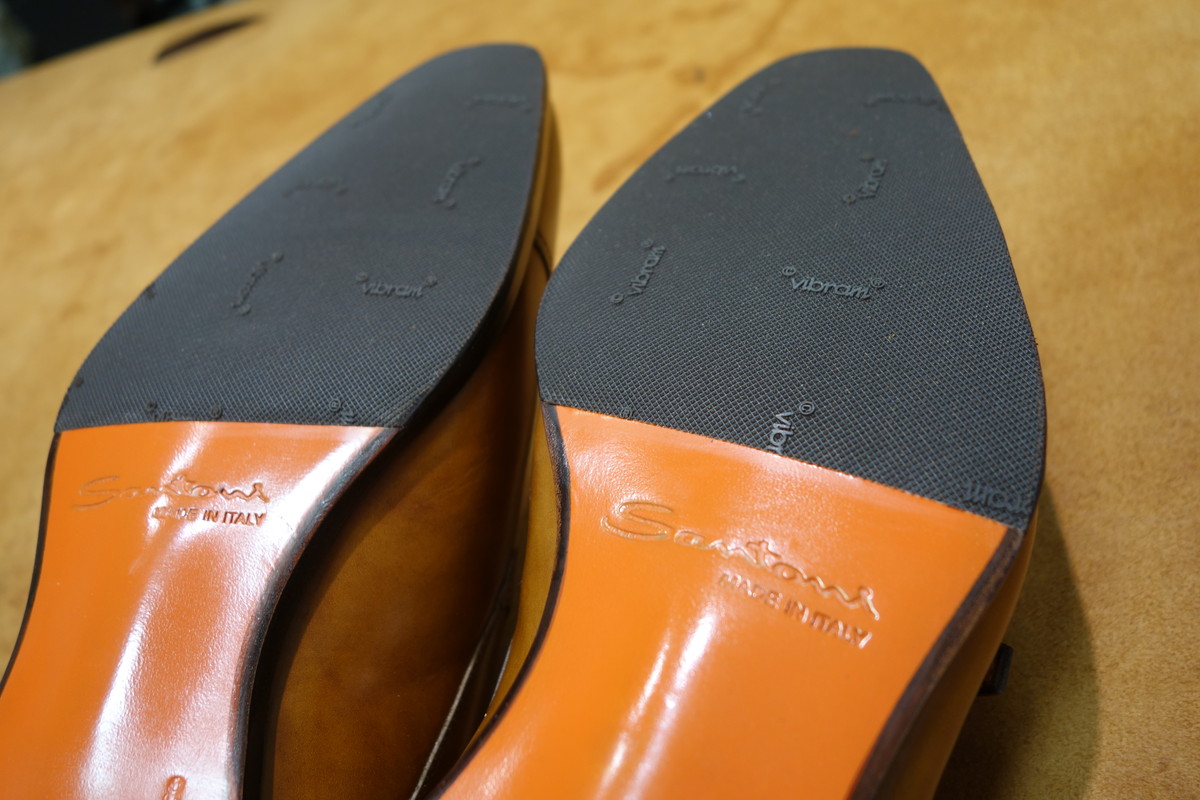 サントーニのアイコン オレンジカラーのソールにハーフソールを施しました。