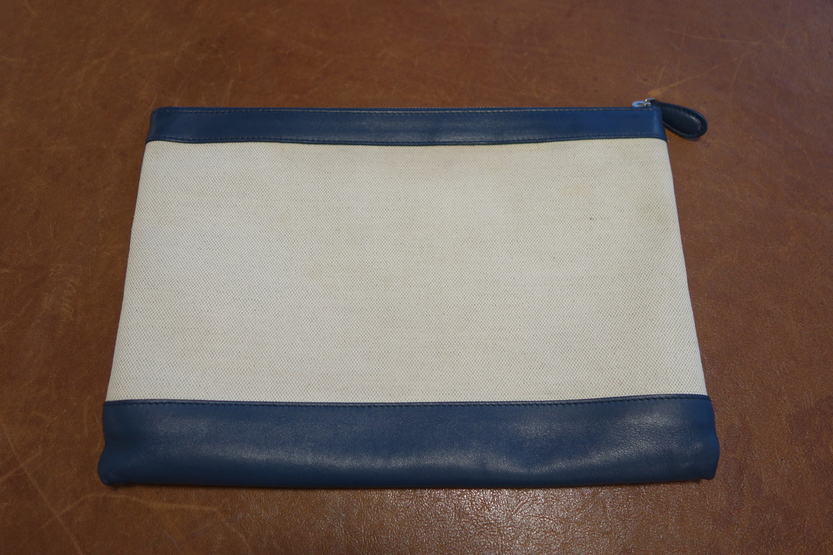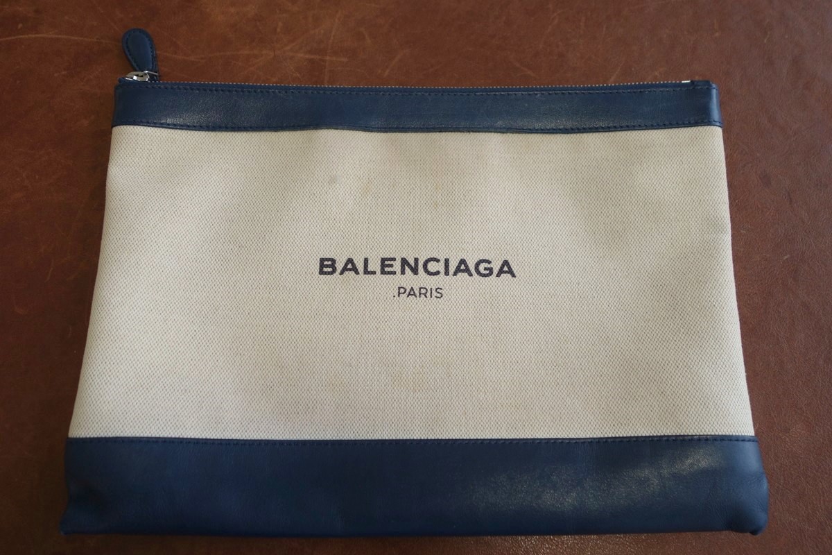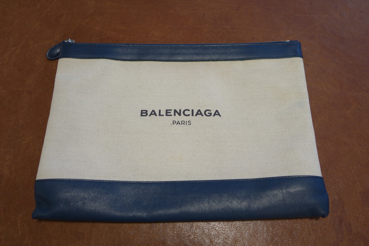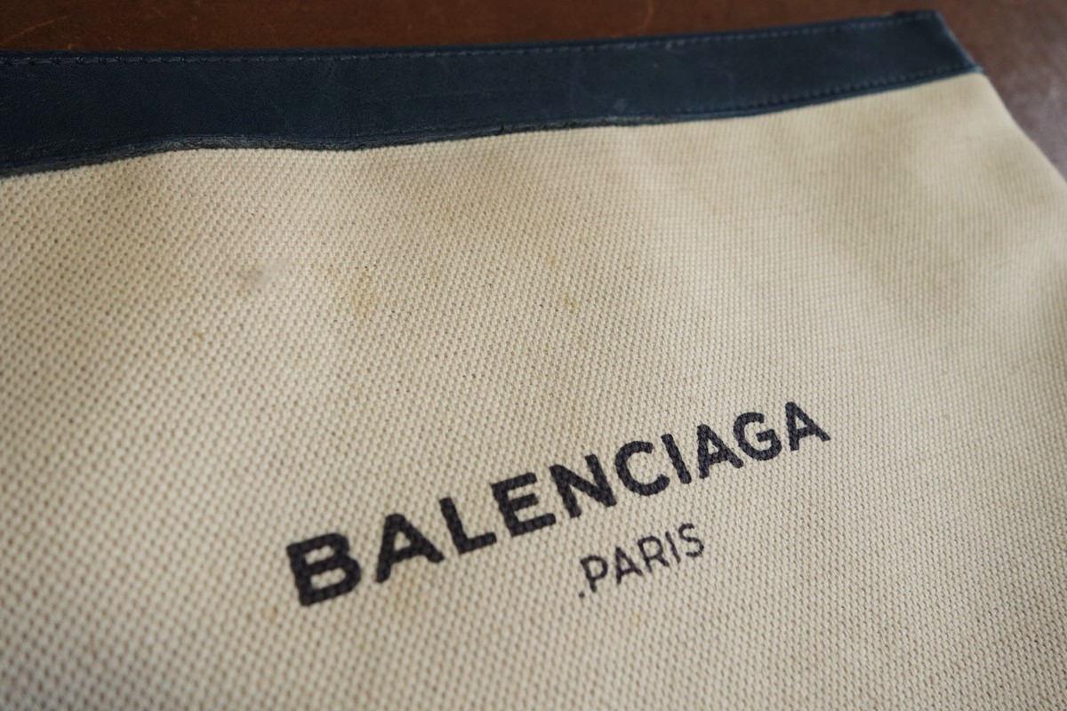 人気のあるBALENCIAGAのクラッチバッグのキャンバス地につく汚れもクレンジングで除去いたします。あまり強く洗浄できないため汚れの状態によっては残るものもありますが全体に明るくすっきりします。