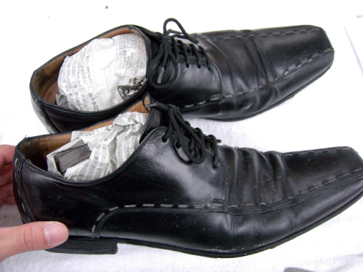 やわらかい布で水気を拭き取りましょう。新聞紙を丸めて靴の内側に詰め込んでいきます(かなり濡れてしまった靴は数時間後入れ替えると効果的です)ソールが革底の場合は新聞紙を靴の下にしいておくといいですよ!!この時期は天気予報をチェックして雨の日はお気に入りの革靴は控えましょう。
