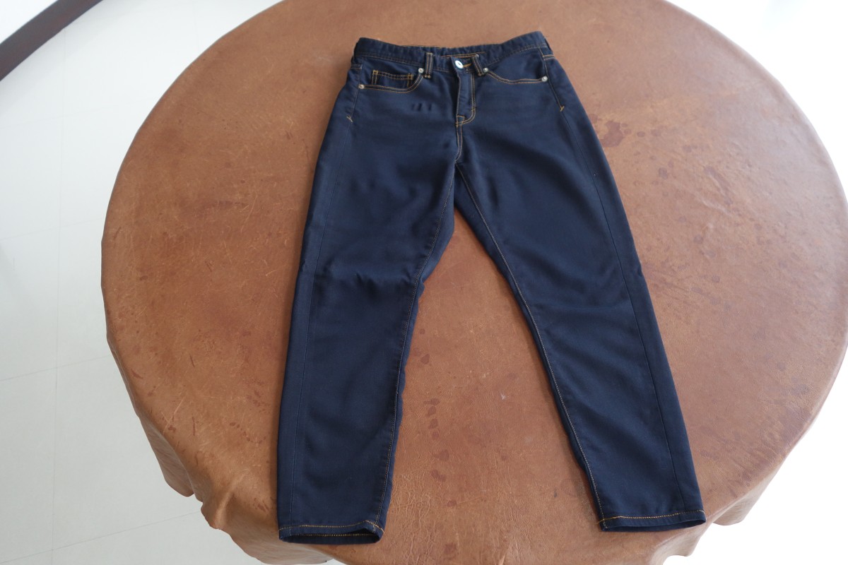 お染め替え後は綿パンツの様な仕上がりになりますが、濃い色で染めますので、範囲が広く目立っていた色抜けは綺麗にムラなく染める事が可能でございます。