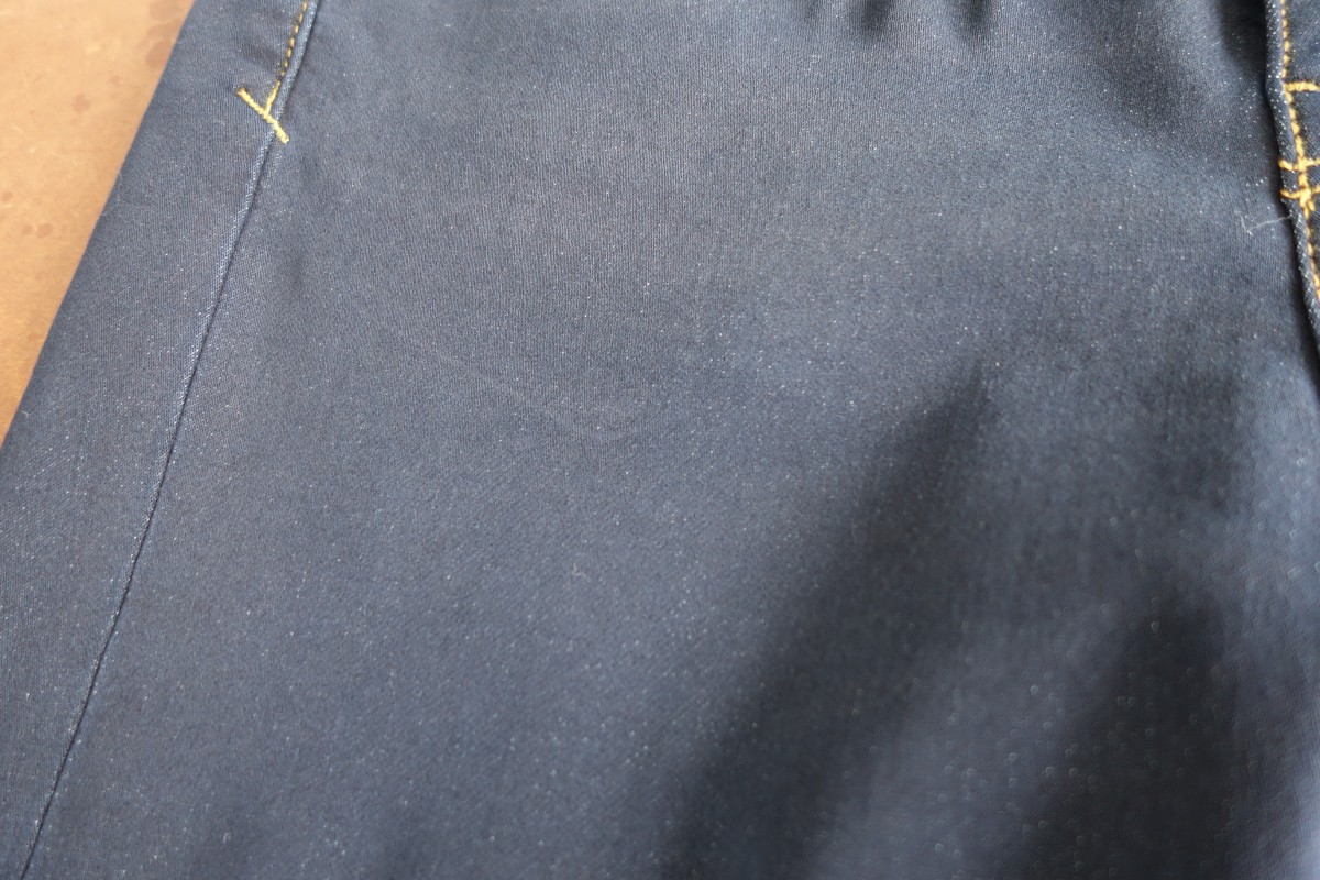 デニム特有の霜降り感の再現が出来ない為、部分染色を行う事で補修箇所と他とで仕上がりに差が出て返って目立つ仕上がりになります。