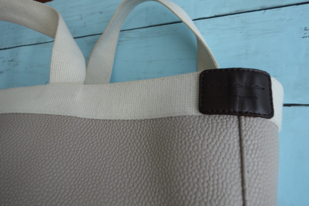 エルベシャプリエにはボディとハンドルの色の組み合わせが違うラインが数種類あってボディはコーテッドキャンバスといってキャンバス地にゴムのようなコーティングがしてあり雨や汚れなどにも強く軽くて耐久性があります。ハンドルはポリコットン素材ですが、色が白っぽい色のものだとどうしても使用していくと汚れが目立ってきてしまうものです。クリーニングにてできる限り汚れを除去いたします。