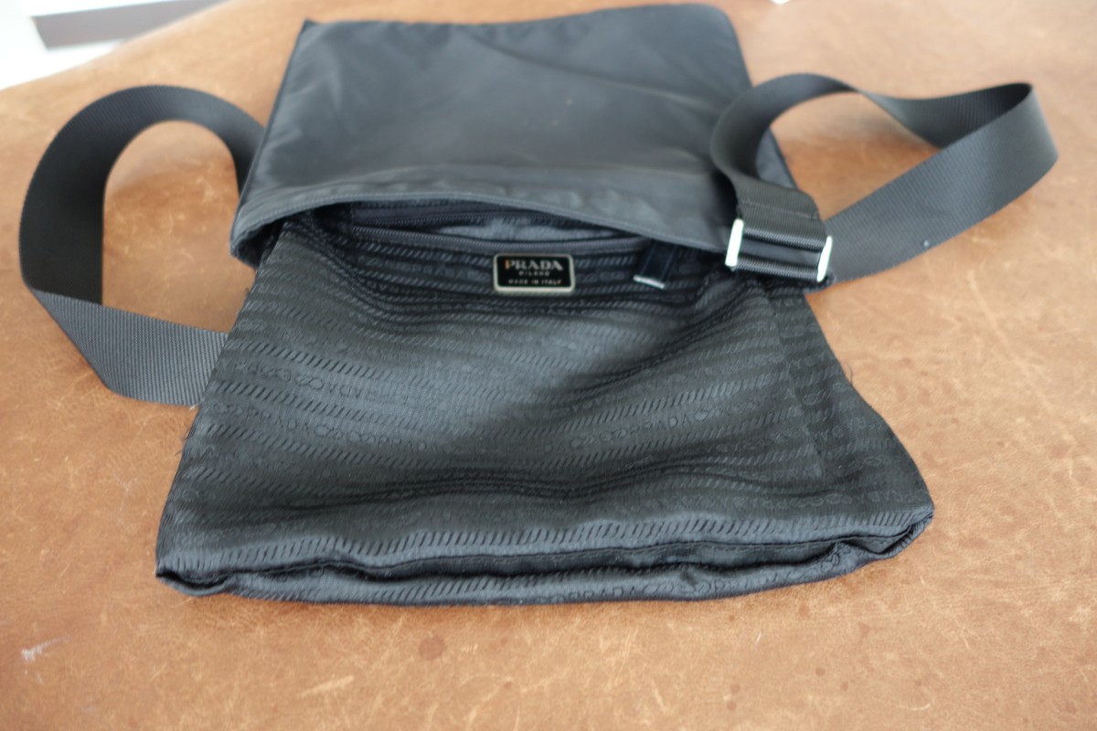 プラダサコッシュバグのショルダーほつれと、内袋の破れ補修です。