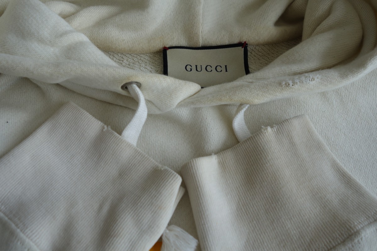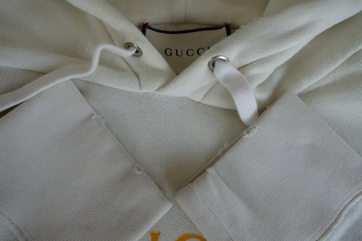 今回は、GUCCI(グッチ)パーカーウェットクリーニングと漂白加工のご紹介です。全体のくすみや黄ばみ、シミが気になりご依頼頂きました。全体にトーンが上がり明るくなりました。お気に入りの衣類の汚れやシミでお困りの際はお気軽にHanakoyaにお問い合わせ頂ければと思います。