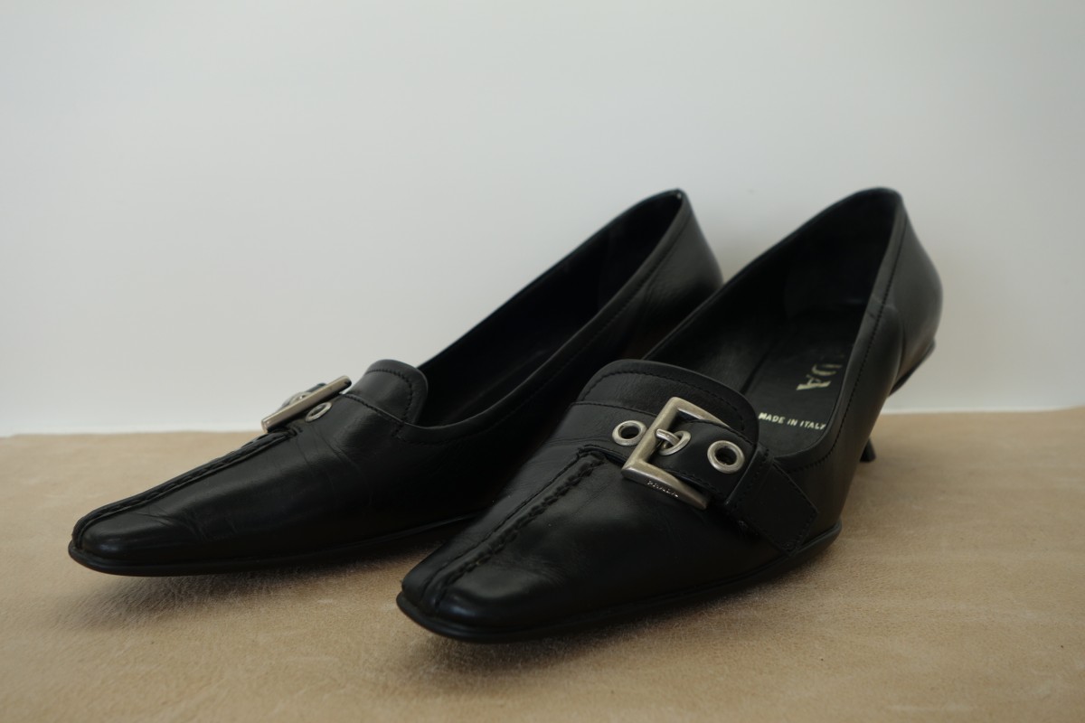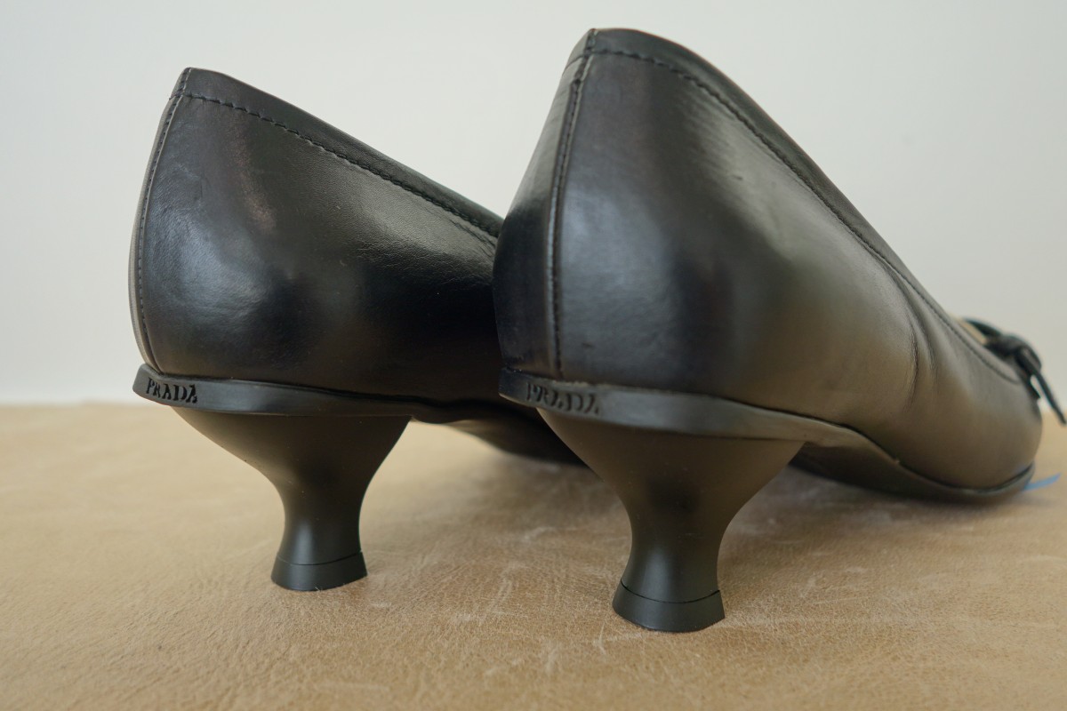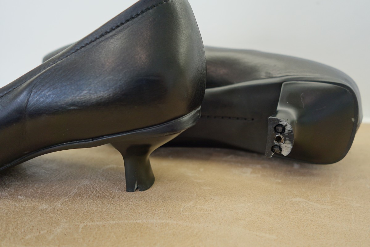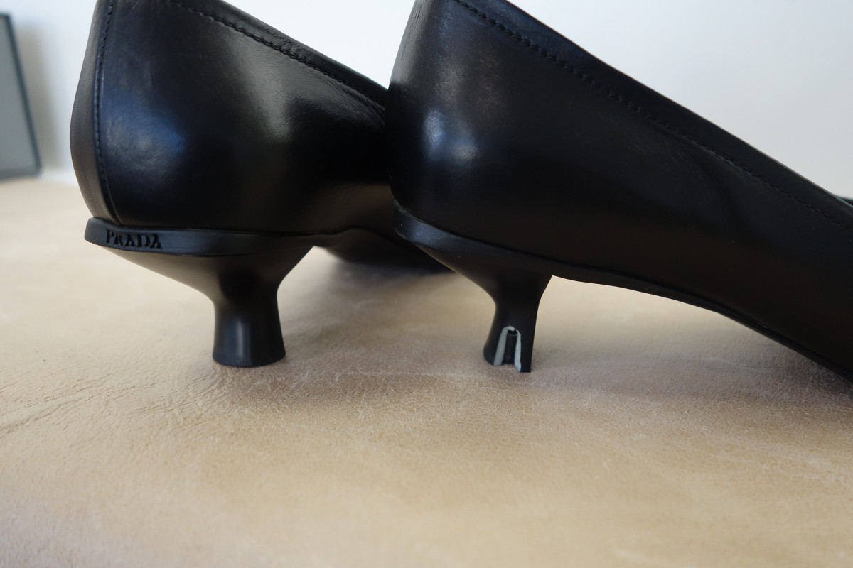 プラダのパンプスのヒール交換です。プラスチックヒールが割れてしまったため、既製品の似たプラスチックヒールに交換しました。