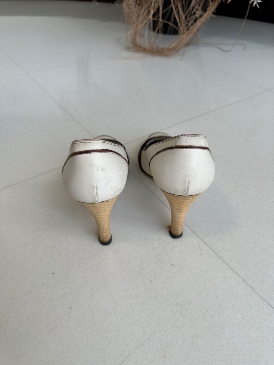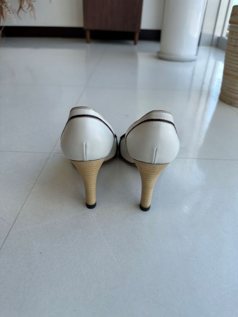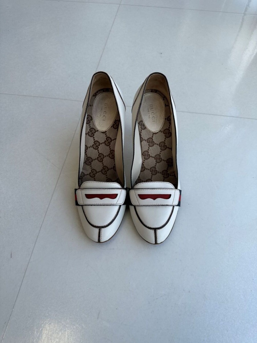 GUCCIのパンプスクリーニングとカラーリング、ヒール部分の革のめくれや傷などの革の巻替えも修復可能です。