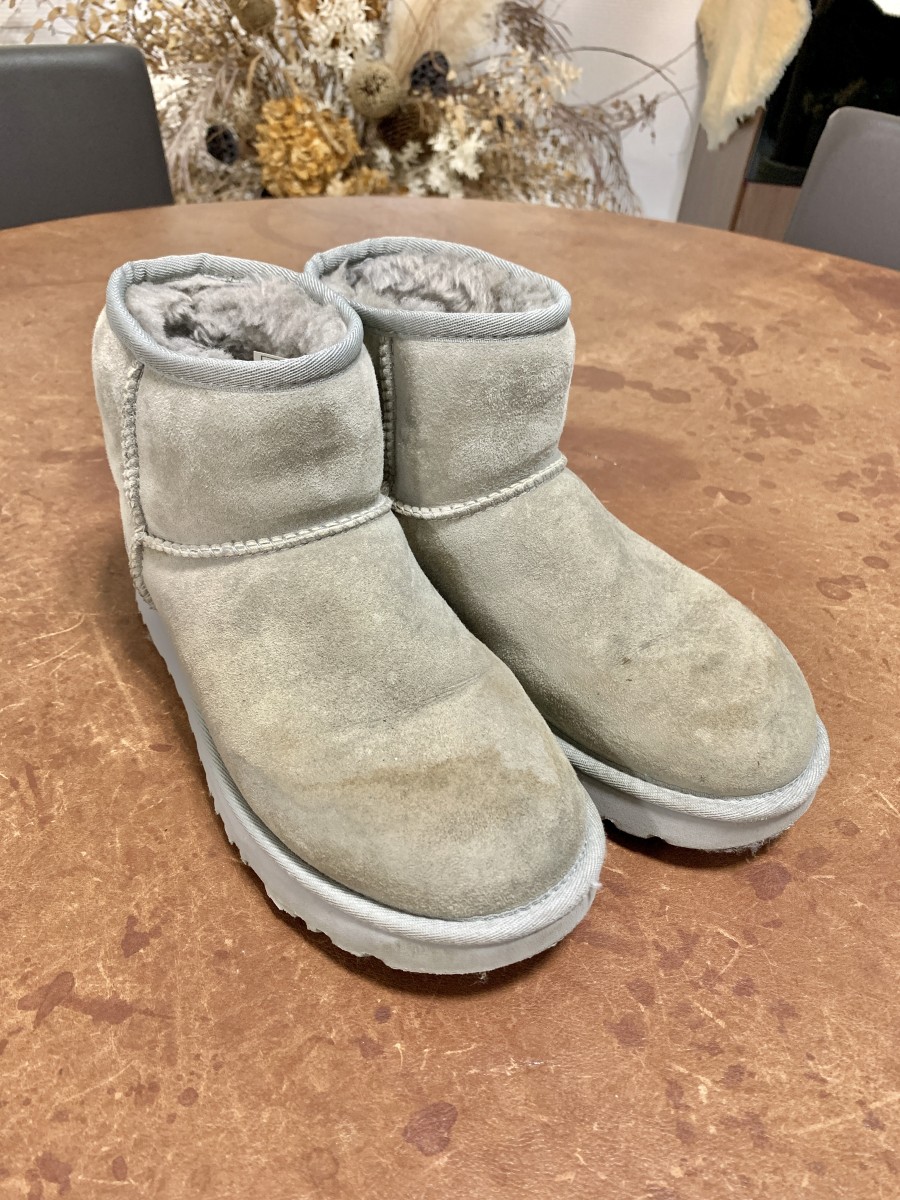 寒くなると活躍するUGG ムートンブーツのクレンジングと色素復元をさせて頂きました。状態に応じて繰り返しクレンジングすることでシミ汚れをできる限り除去いたします。