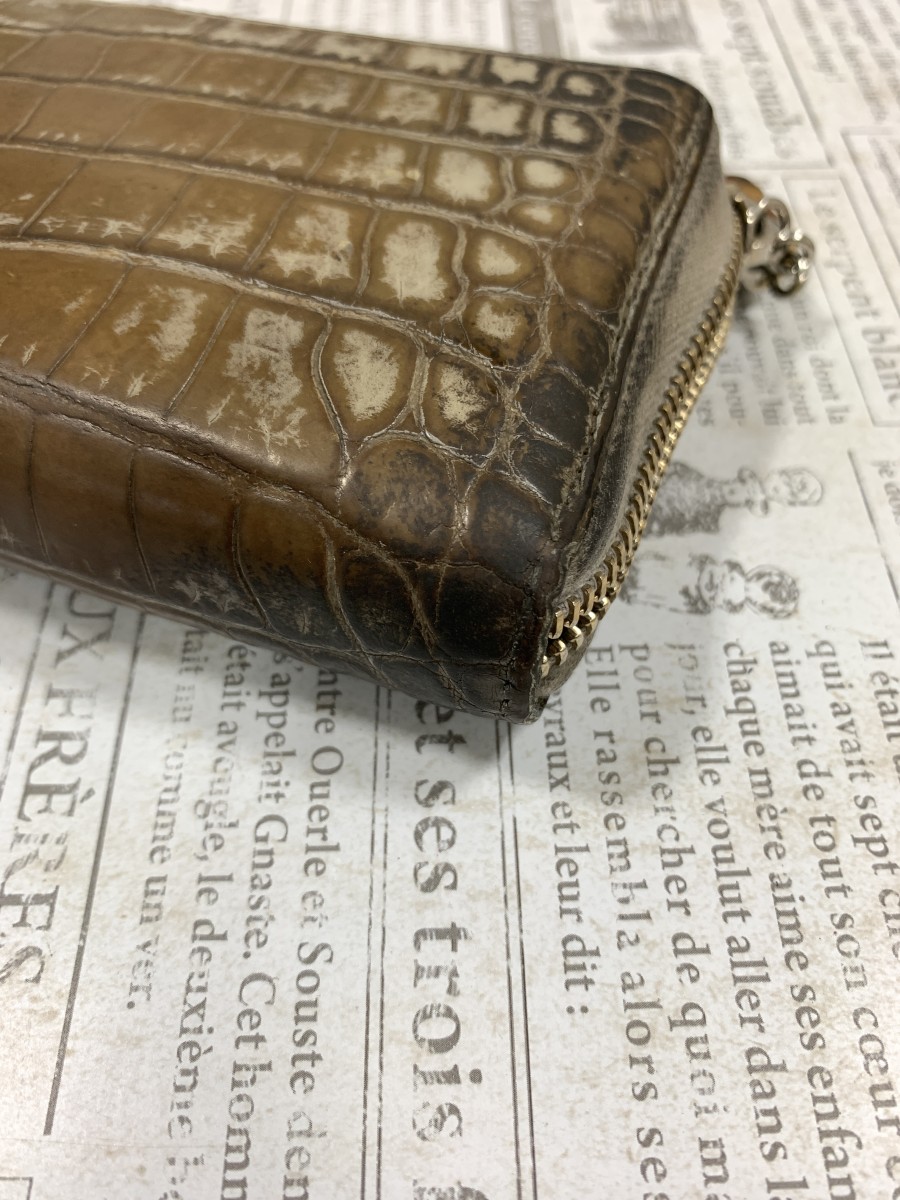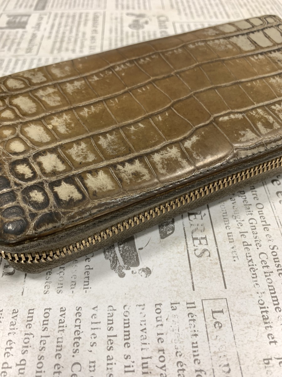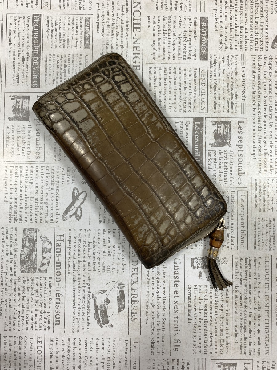 GUCCIのクロコ型押長財布を綺麗にしたいとお持ち頂きました。