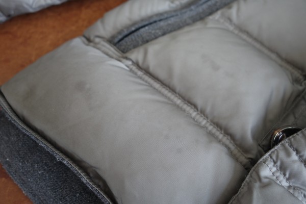 モンクレールダウンウェアFLAMMETTEウェットクリーニングと補修跡生地あて補修