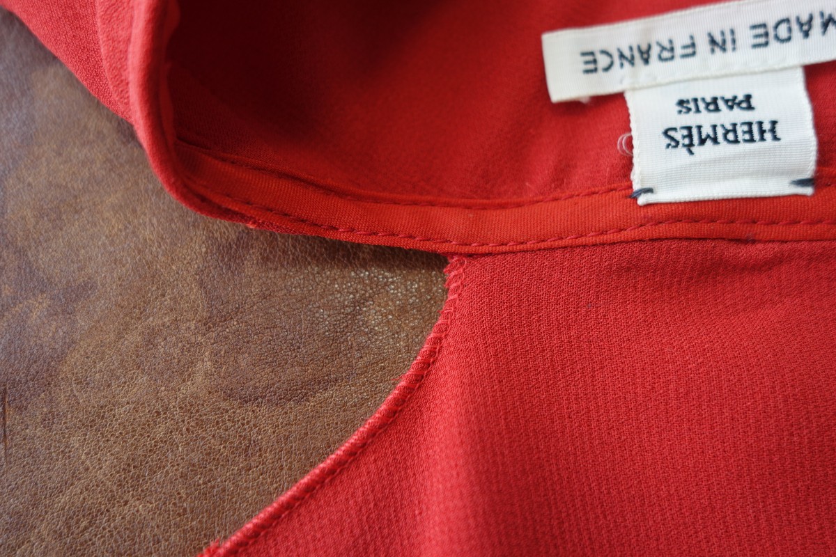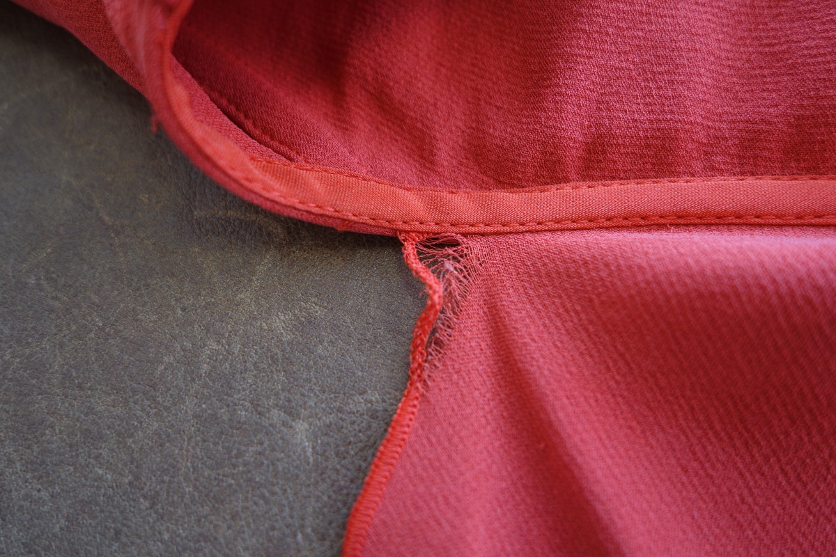 襟元スカーフの根元ほつれは元のように巻きロック仕様で補修しました。