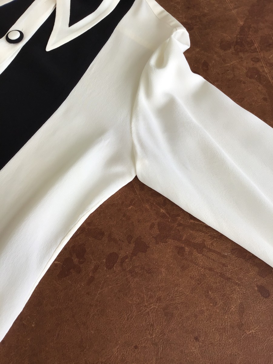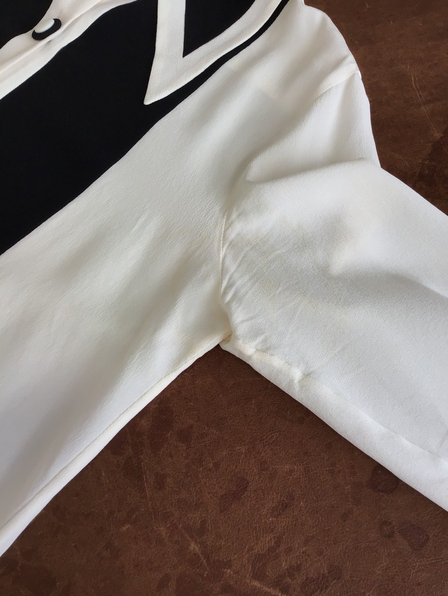 両脇に黄ばみがありますが、ウェットクリーニングと漂白加工にて除去させて頂きました。