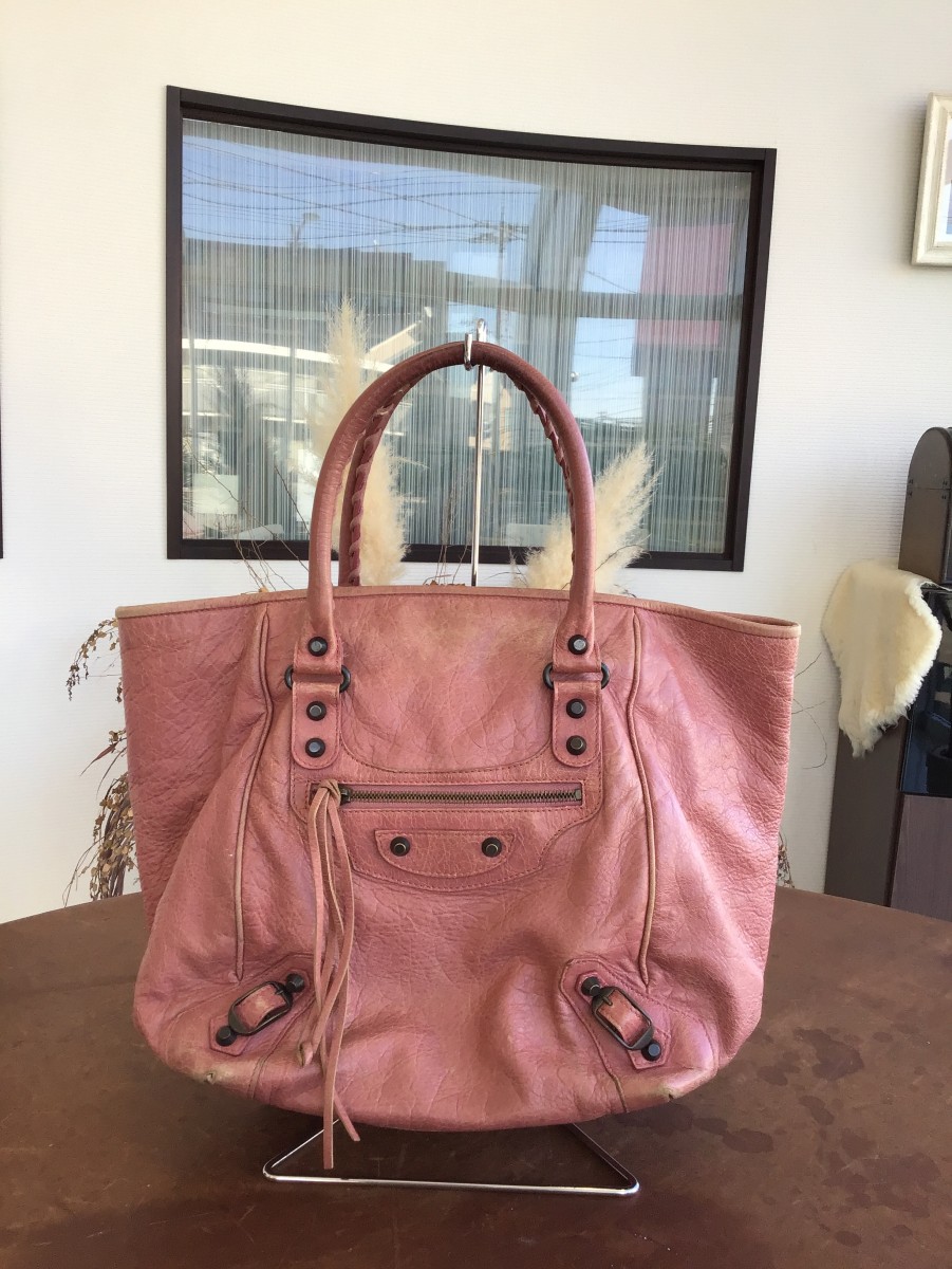 バレンシアガシティは形や色のバリエーションも多くカジュアルなデザインで人気シリーズです。長年に渡り使用したことで起こる日焼けによる退色やスレをクリーニングとカラーリングで改善することが可能です。カバンの状態に合わせて修理の方もご提案させていただきます。