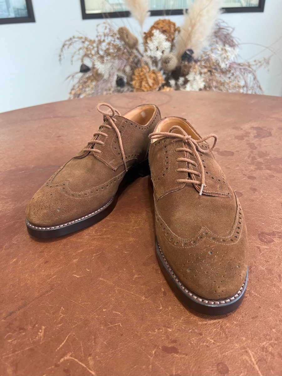スエード素材の靴も丸洗いのウェットクリーニングでスッキリ仕上げ色素復元にて色を発色させ栄養を与えます。ソールの修理も状態やご希望によりご提案させていただきます。