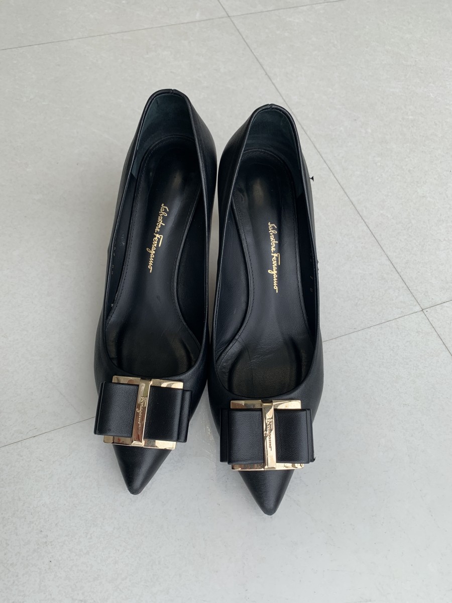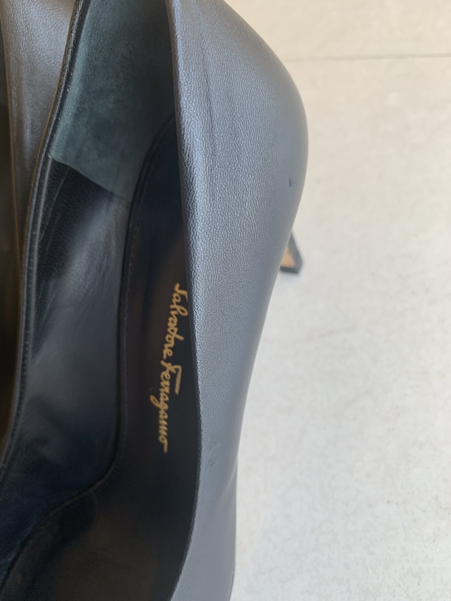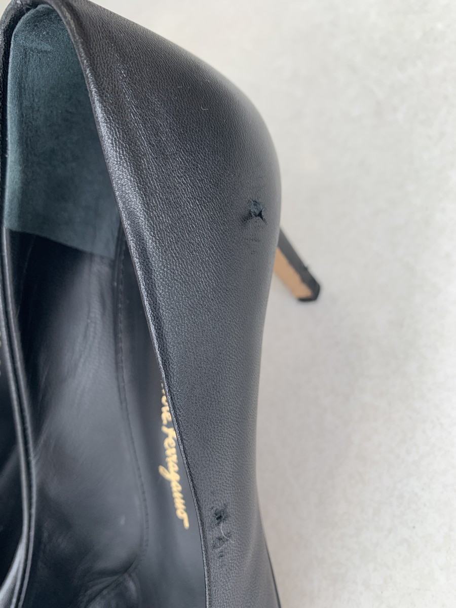 フェラガモのパンプスを修理と染色補正でお預かりしました。