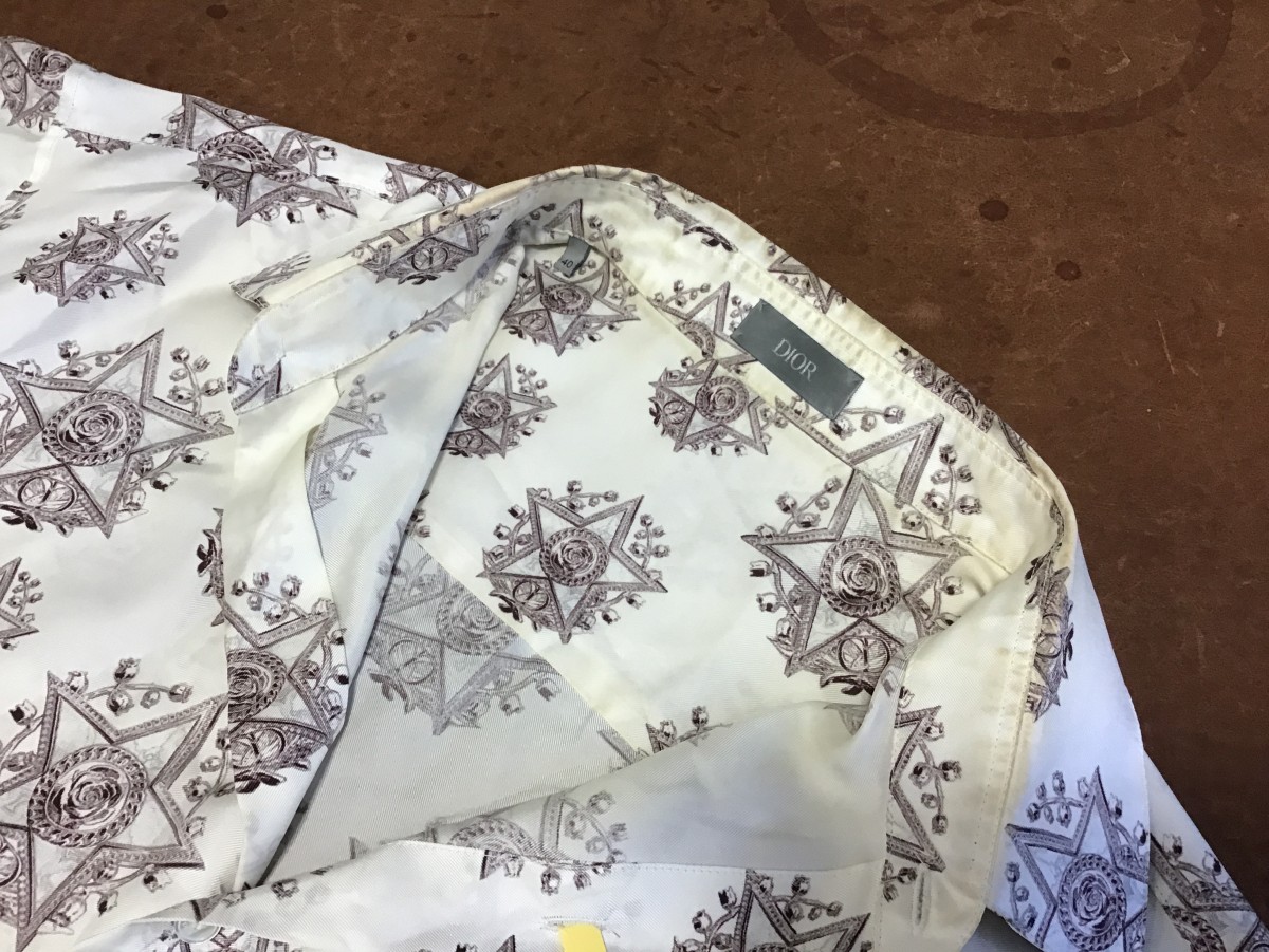 Diorシルク半袖シャツのウエットクリーニング+漂白加工のご紹介です。