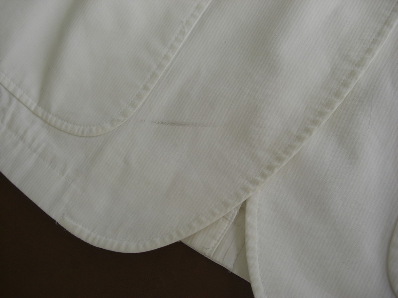 襟元や全体の黄ばみ・黒ずみは漂白加工(ホワイトニング)することで本来の白さに戻ります。元色がアイボリーなどの場合はホワイトニングしてもアイボリーのお仕上がりです。