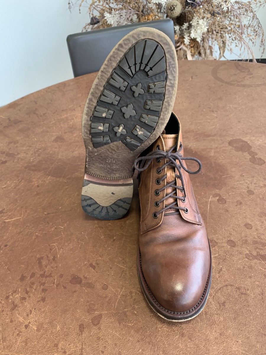 紳士用ショートブーツのオールソール交換のご依頼です。