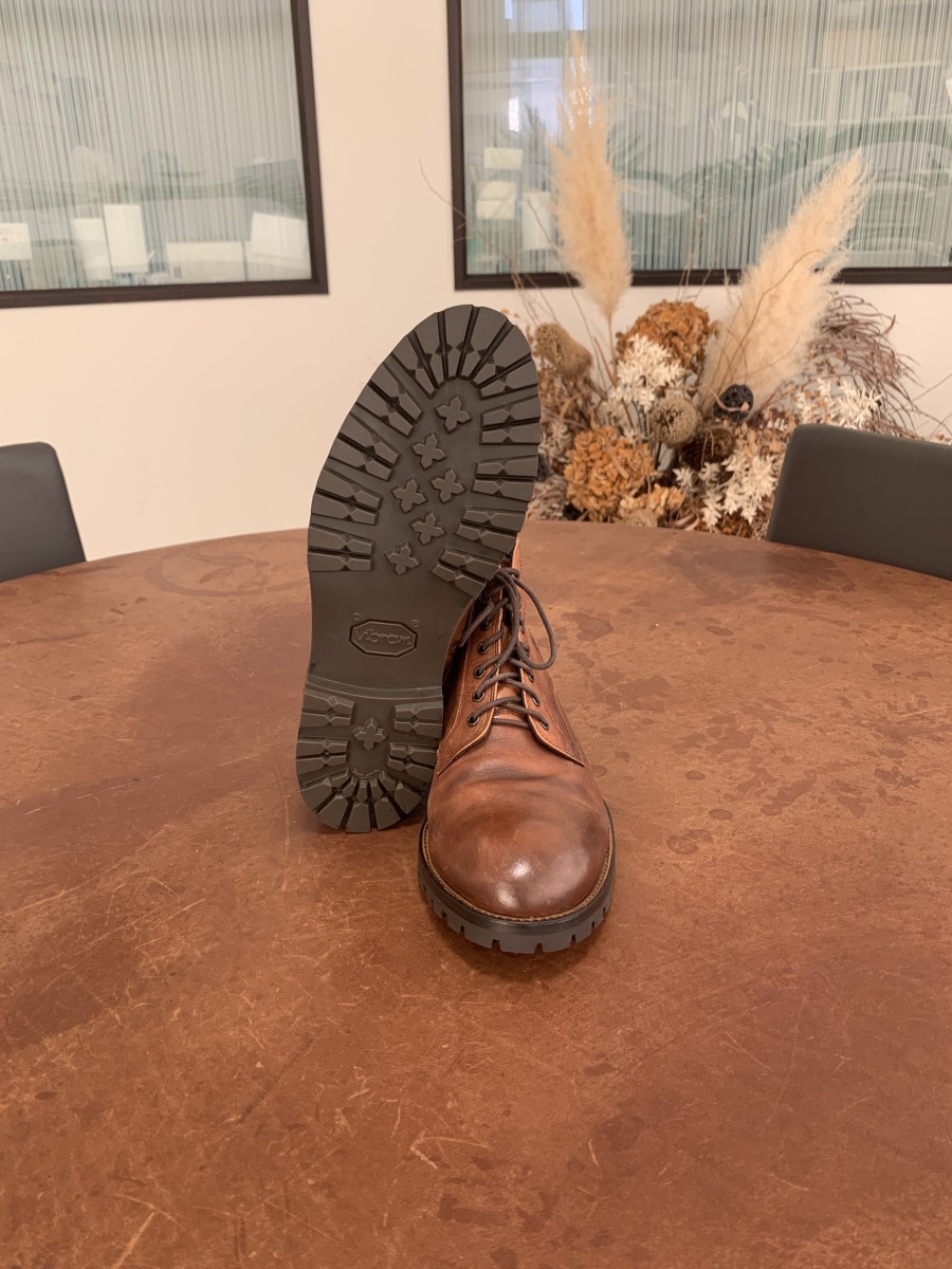 今回はビブラム社の#1136を使用。雰囲気もできるだけ変えないようにウェルトやっミッドソールも再現いたしました。