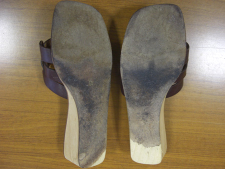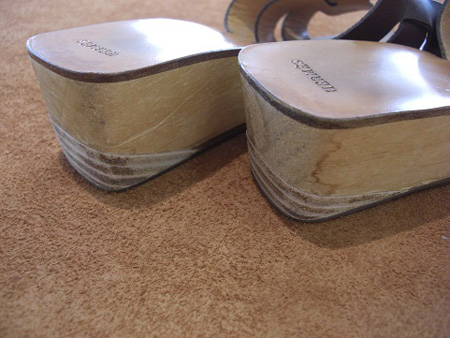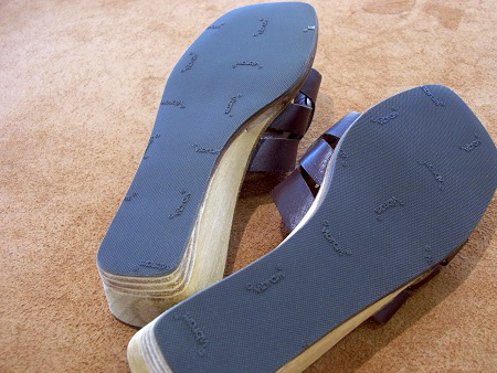 ウェッジソールが削れています。減った部分を補いトップに保護用のシートを貼りました。