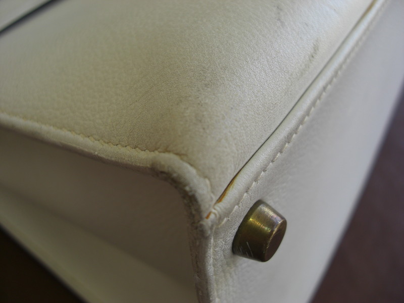 年代物のケリーもエルメスの風合いを意識し傷や表面のくすみを改善いたします。カデナ等金属部分はお磨きしくすみを取り除きます。