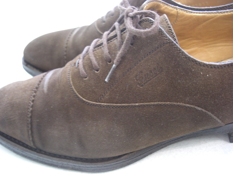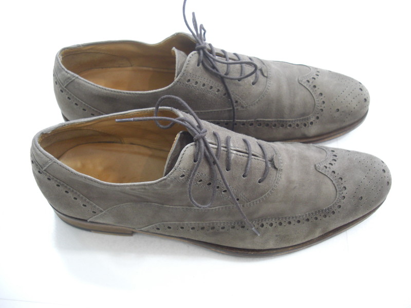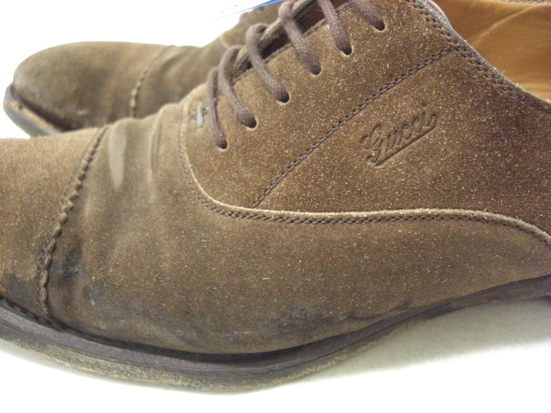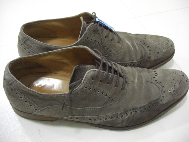 雨による水ジミは放っておくと落ちにくくなりますので早めのケアが必要です。クレンジングと色素復元加工をし、スエードの場合は最後にブラッシングとハイパー撥水加工を施します。