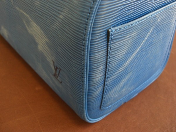 エピは表面をコーティングしてあるため通常の革よりも頑丈な分カビが発生しやすいです。カビは水洗いで除去し、カビ跡は染色補正にて修復致します。