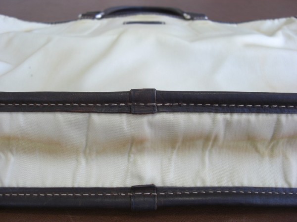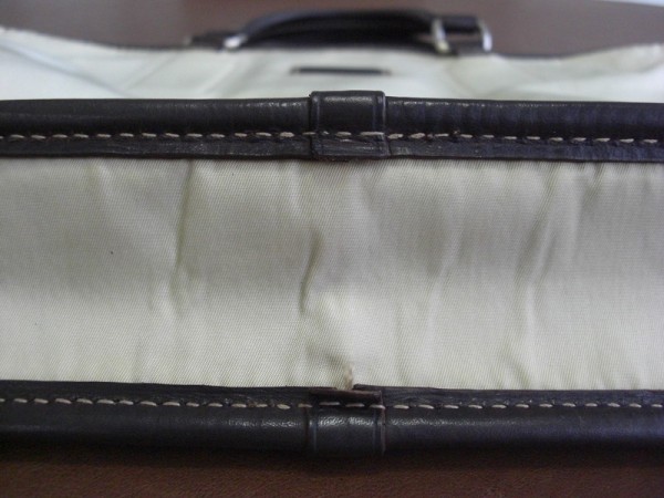 ナイロンとレザーのコンビのタイプは洗っている最中は大丈夫なのですが、自然乾燥中に色が出てきます。自然乾燥中に色が出た場合は、再度洗っても同じような状態になります。なにもしないで完全に乾くのを待って専門店にご相談されることをお勧めいたします。