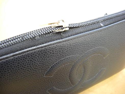 CHANEL(シャネル)財布のファスナー交換です。ファスナーが開いてしまう場合はスライダーの交換で概ね対応が可能ですが、布地部分が破れたりエレメント(駒)が折れている場合は全交換となります。引手も再利用が可能です。