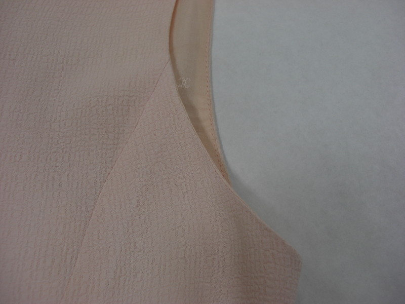 シルクのワンピースの脇ジミはしみ抜きや漂白加工にて除去致します。全体のくすみが取れることで風合いや発色がよくなります。