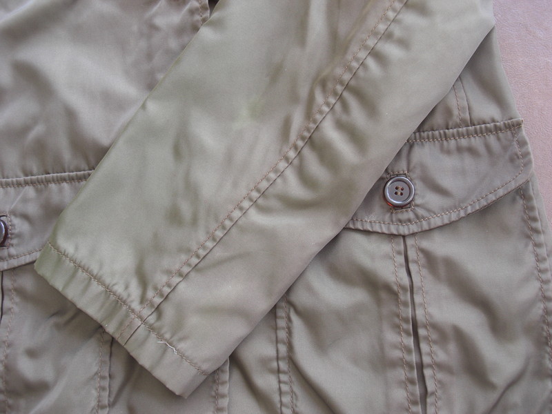 ナイロン素材は皮脂や日焼けにより変色します。変色はクリーニングでは落ちませんので染め直しを施し修復します。このような状態でお困りの方はお気軽にご相談ください。