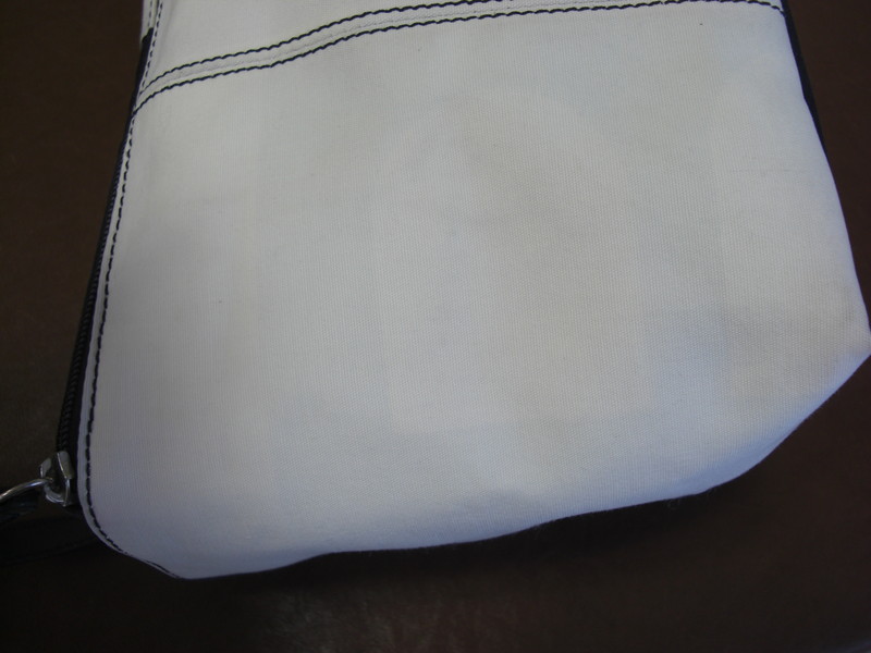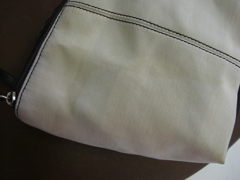 BALLYのキャンバスバッグの黄ばみ取りや色移り除去は状態によっては取れないケースもございますので早い段階で専門店にご相談されることをお勧めいたします。今回は漂白加工にて除去致しました。