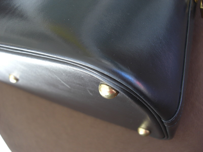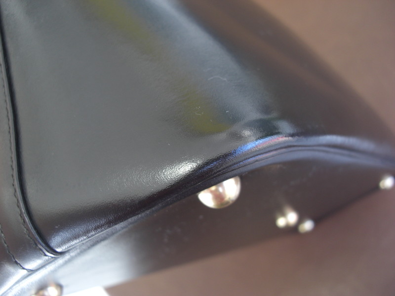 ボックスカーフのボリードは傷がつきやすく目立ちます。エルメスは風合いを重視し染色補正しますので深い傷はあえて残る仕上がりを致します。