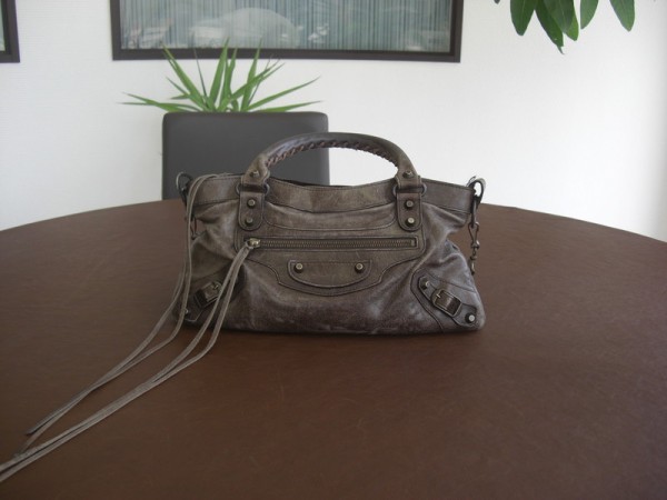 BALENCIAGA特有のムラ感のあるレザーバッグですが、日焼けと乾燥により表面が白っぽくなっています。乾燥が更に進むとひび割れを起こしますので、ご注意ください。クリーニングにより汚れを除去した後、染色補正を施しました。染色することで本来の色合いに戻していきます。