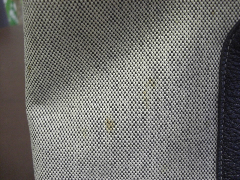 キャンバス地全体的の黒ずみや黄ばみ、食べこぼしのようなシミはクレンジング(水洗い)と漂白加工を施し修復いたします。仕上げにはハイパー撥水コーティングを施すことで今後の汚れを予防します。